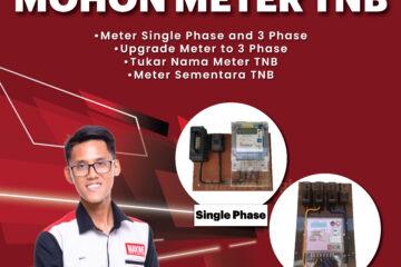 Untuk upgrade Meter TNB Single Phase ke 3 Phase perlu membuat Permohanan melalui Kontraktor Elektrik berdaftar TNB. Ini kerana penggunaan bebanan elektrik semakin bertambah atau penggunaan load yang tinggi oleh sesebuah rumah perlu di upgrade ke Meter 3 Phase untuk keselamatan sistem wiring rumah dan jangka hayat yang panjang.